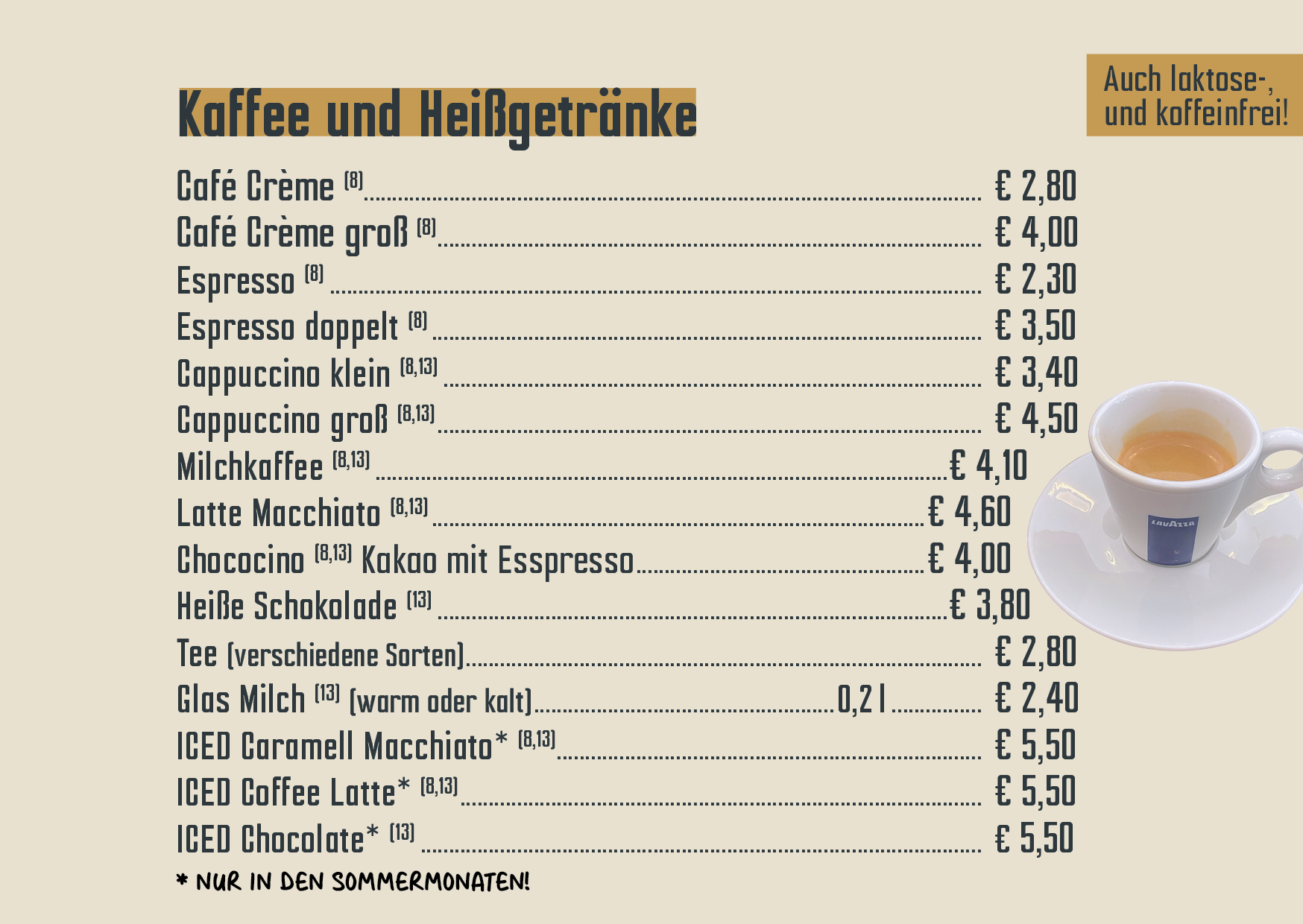 Chococino (8,13) Kakao mit Esspresso 4,00 €