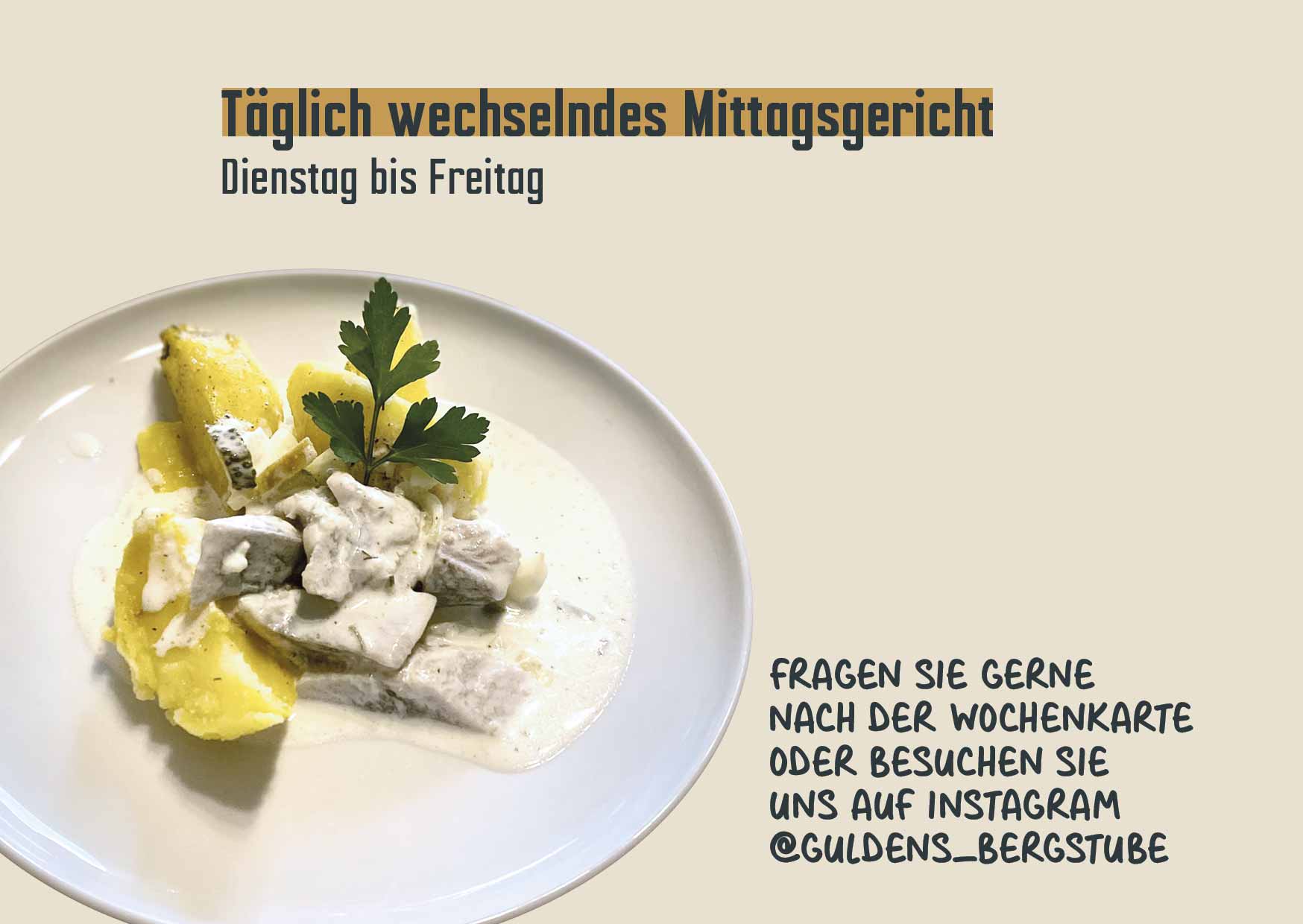 Fragen sie gerne nach der Wochenkarte oder besuchen Sie uns auf instagram.com/guldens_bergstube
